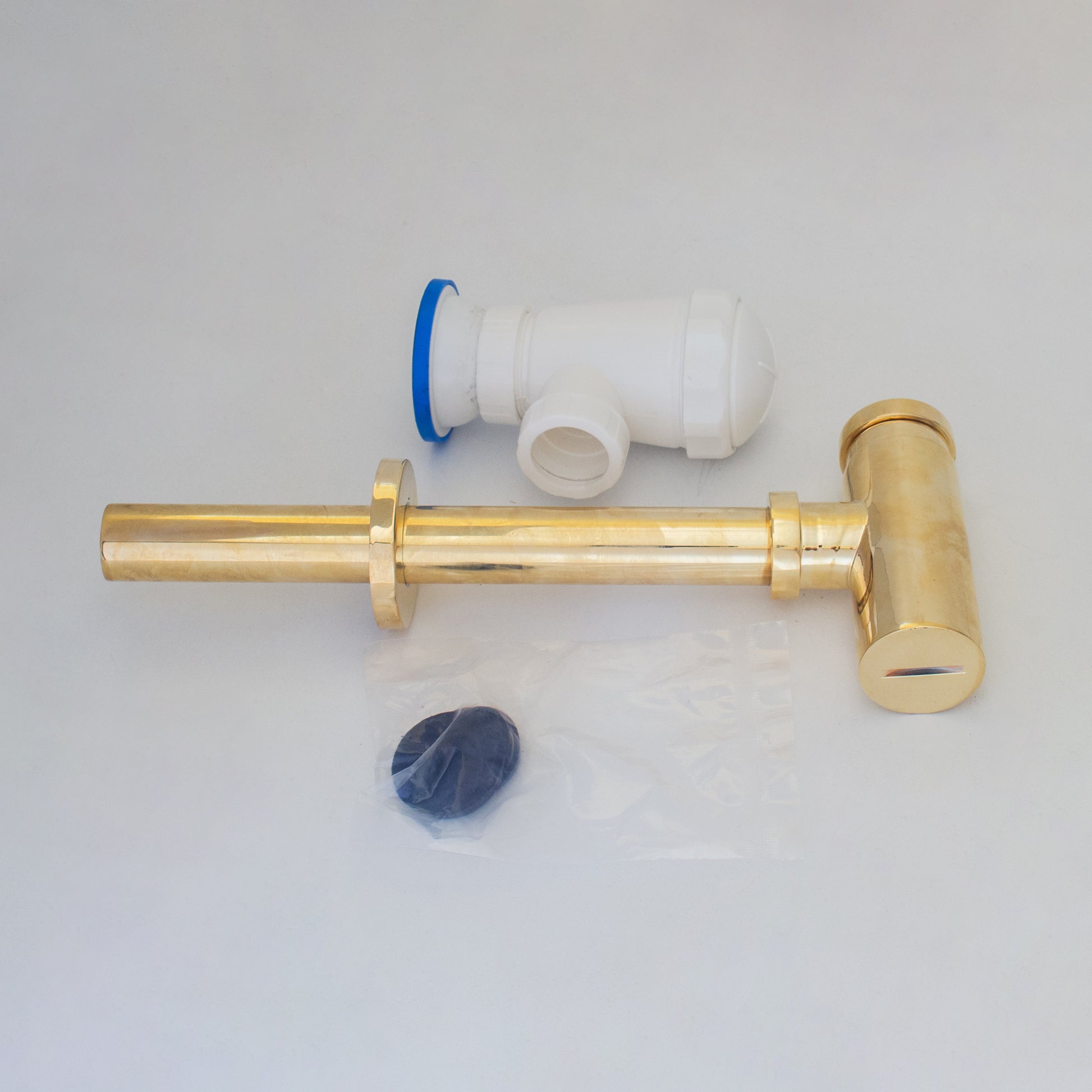 Round Solid Brass Bottle P-Trap & Push-Up Drain