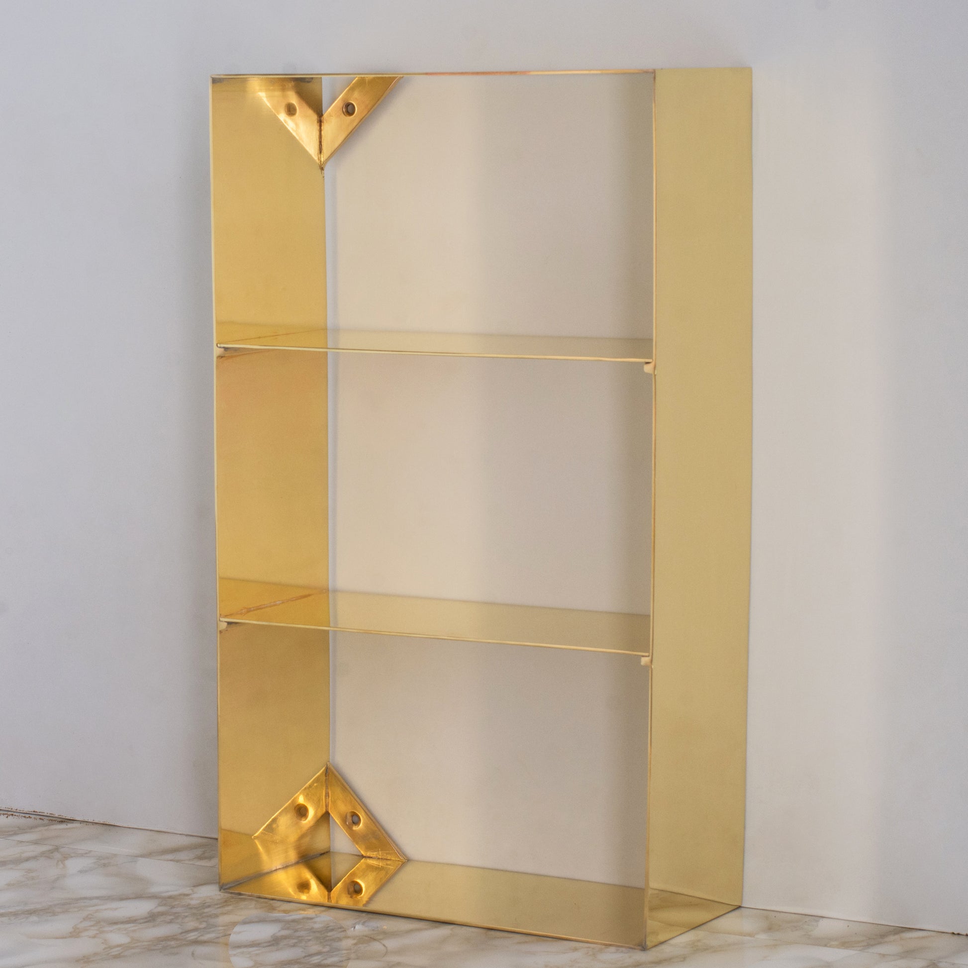 Unlacquered Brass Floating Wall Bookshelf | Brass Bookshelf Storage Cabinet