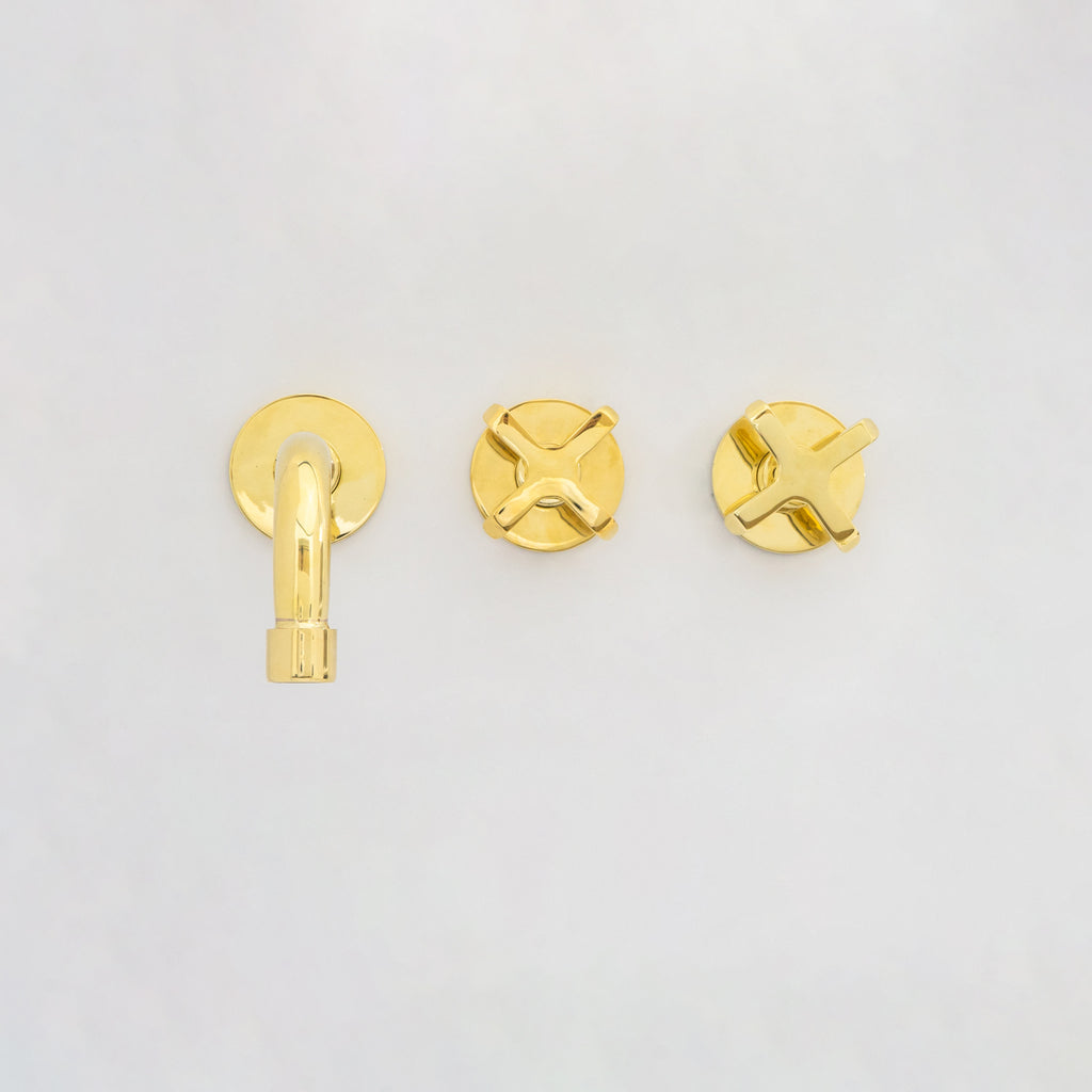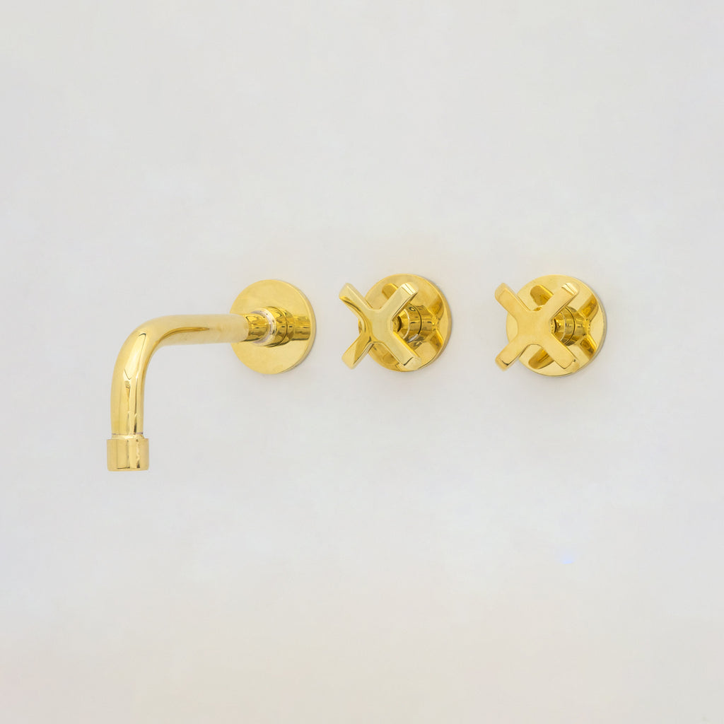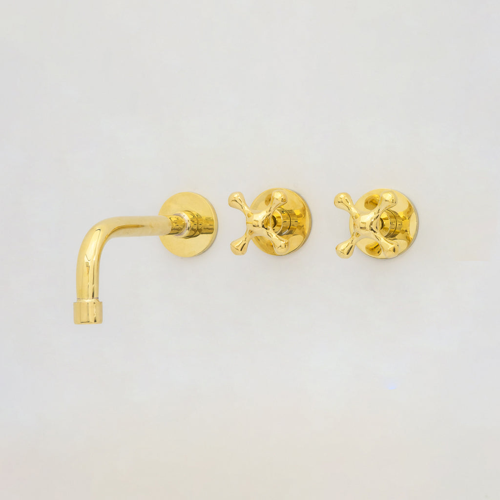 Unlacquered Brass Wall Mount Bathroom Faucet, Solid Brass Concealed Wall Faucet